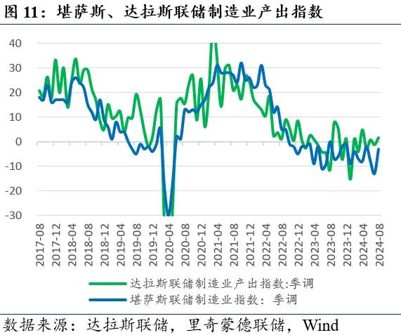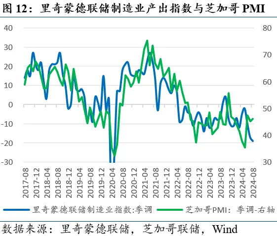 经济前瞻性指标。8月24日当周纽约联储周度经济指数(WEI)为+2.27%(前值由+2.32%下调至+1.86%)。8月堪萨斯联储制造业产出指数-3.0(前值-13.0);达拉斯联储制造业产出指数1.6(前值-1.3);里奇蒙德联储制造业综合指数-19.0(前值-17.0);8月芝加哥联储PMI为46.1(前值45.3)。