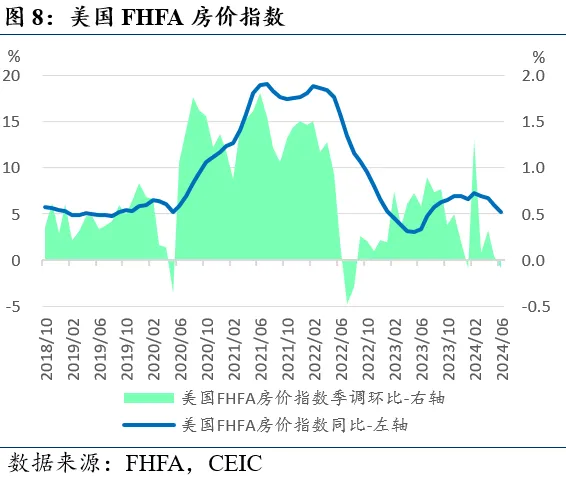 6月主要房价指数同比涨幅趋缓。8月27日公布的数据显示,美国6月S&P/CS20座大城市房价指数同比+6.5%(预期+6.0%,前值+6.9%),季调环比+0.4%(前值+0.4%)。6月FHFA房价指数同比+5.2%(前值+5.9%),季调环比-0.1%(预期+0.1%,前值0.0%)。