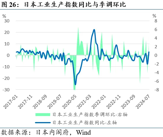 7月工业生产指数明显回升。日本经济产业省8月30日发布的数据显示,7月日本工业生产指数同比+2.7%(前值-7.9%),季调环比+2.8%(前值-4.2%)。