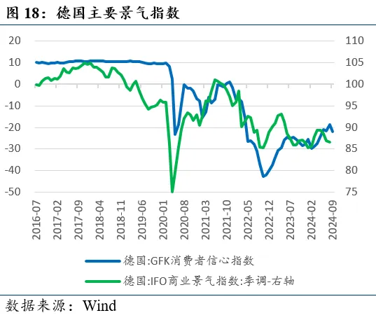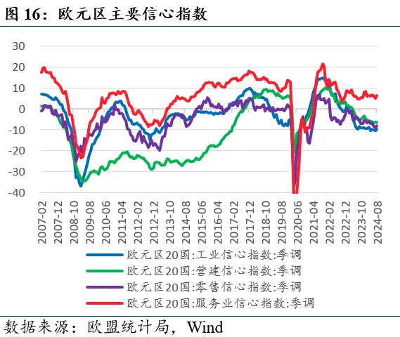主要经济景气指数低位回升。欧盟统计局8月29日发布的数据显示,8月欧元区工业信心指数为-9.7(前值-10.4),营建信心指数为-6.5(前值-6.4),零售信心指数为-8.1(前值-9.1),服务业信心指数为4.8(前值6.2)。欧盟经济景气指数为96.9(前值96.5),欧元区20国为96.6(前值96.0)。德国9月GFK消费者信心指数为-22.0(前值-18.6),8月德国IFO商业景气指数为86.6(前值87.0)。