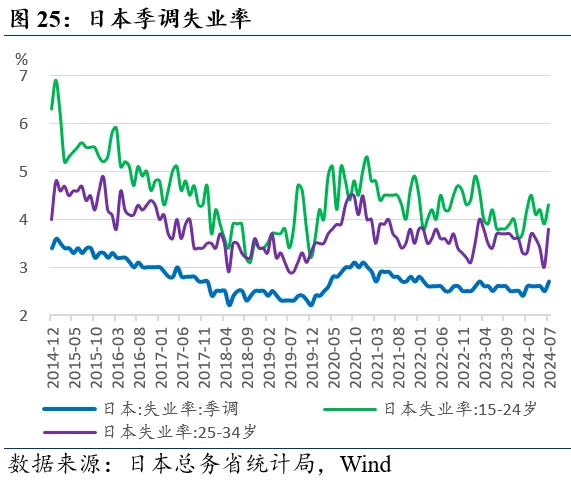 日本年轻人失业率意外回升。日本统计局8月30日公布的数据显示,7月日本季调后失业率为2.7%(预期2.5%,前值2.5%),其中,15-24岁失业率为4.3%(前值3.9%),25-34岁失业率为3.8%(前值3.0%)。