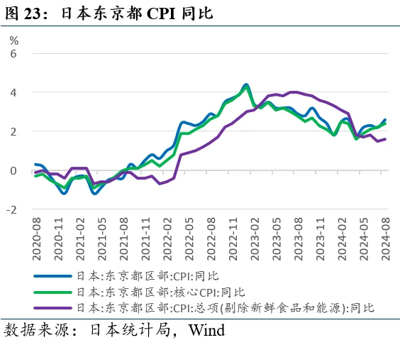 日本:年轻人失业率意外回升日本8月东京都核心CPI回升。日本统计局8月30日发布的数据显示,8月日本东京都区部CPI同比+2.6%(预期+2.2%,前值+2.2%),环比+0.5%(前值+0.3%);剔除新鲜食品的核心CPI同比+2.4%(预期2.2%,前值+2.2%),环比+0.4%(前值+0.4%);剔除新鲜食品和能源的核心CPI同比+1.6%(前值+1.5%),环比+0.5%(前值+0.2%)。